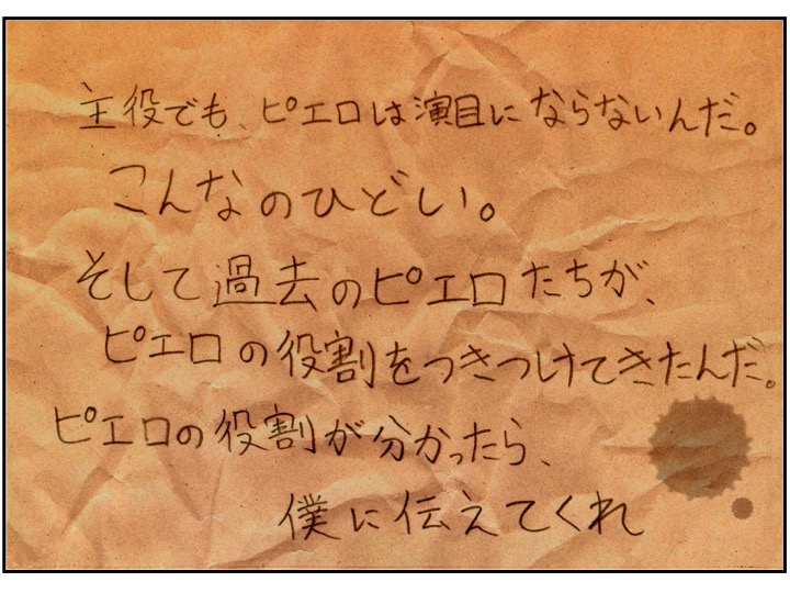 だからピエロからの手紙を入れたんです、涙で濡れた手紙を。