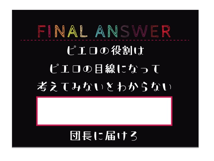 君もわかっただろう?ピエロの役目は辛いんだ。