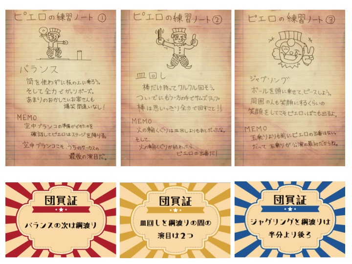 ピエロの練習ノートは、ピエロ自身が書いているからピエロの出番にも言及がある。
