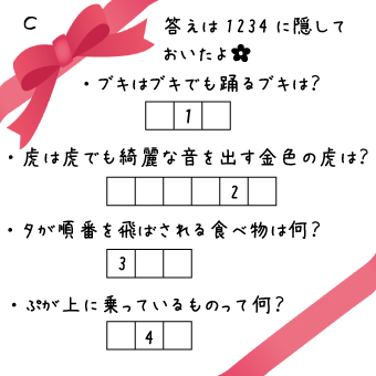 このリボンのかかり方は今まで解いてきた問題で、後ろから読むという法則がありました。