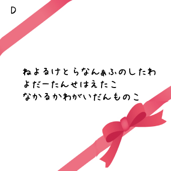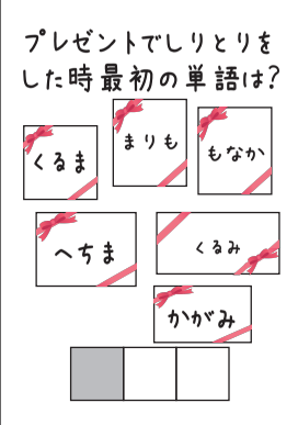 えりえりの問題、こちらはプレゼントをそのまま読むとしりとりが成り立ちません。