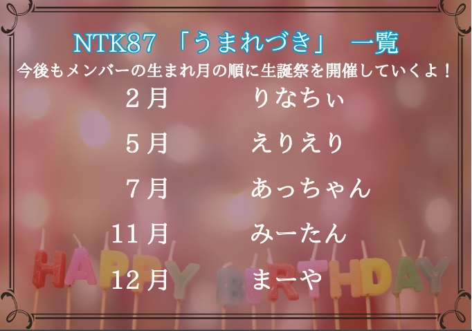 みむ、とりーさん、ななこちゃん、ユナちゃんです。(被り一名います)